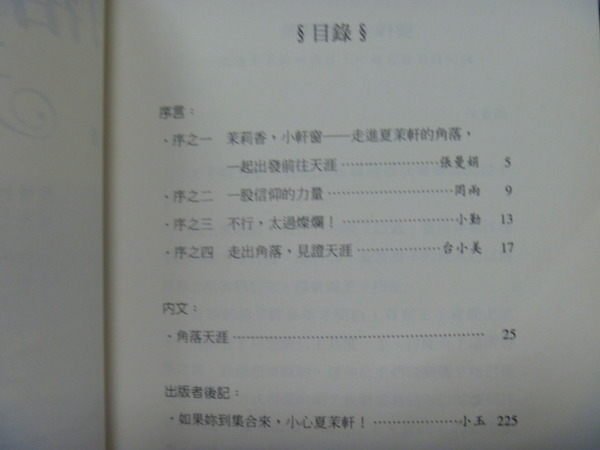 | 購買 全店購物滿 1000 元(含)以上免運費 【書寶二手書T4/一般小說_KOQ】角落天涯_夏茉軒:100081237424,店家為 書寶二手書店 樂天市場購物網 - 台灣 售價:39 我要購買 | ||